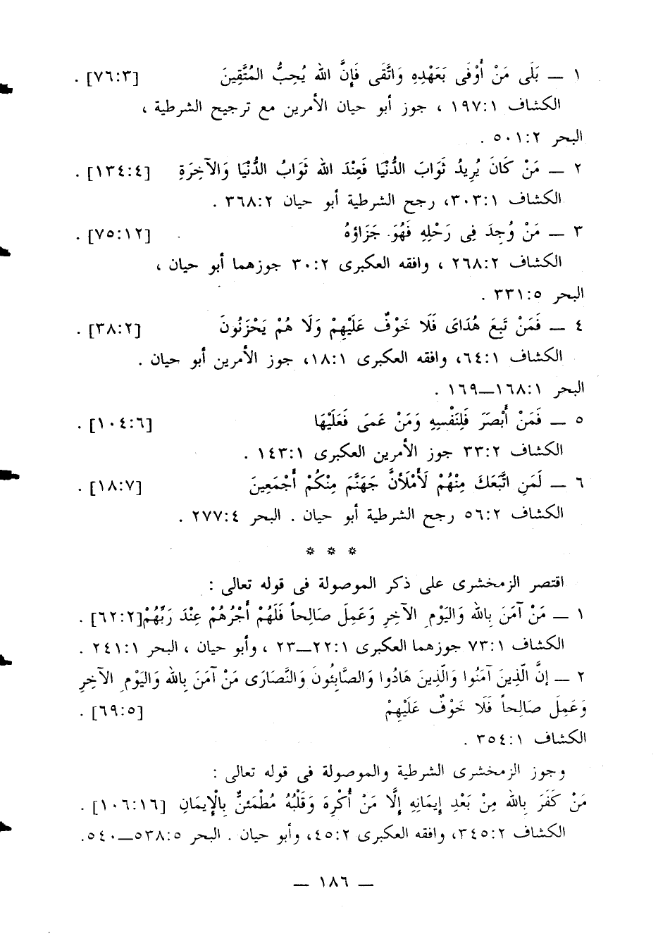 الكشاف 1: 197، جوز أبو حيان الأمرين مع ترجيح الشرطية، البحر 2: 501.