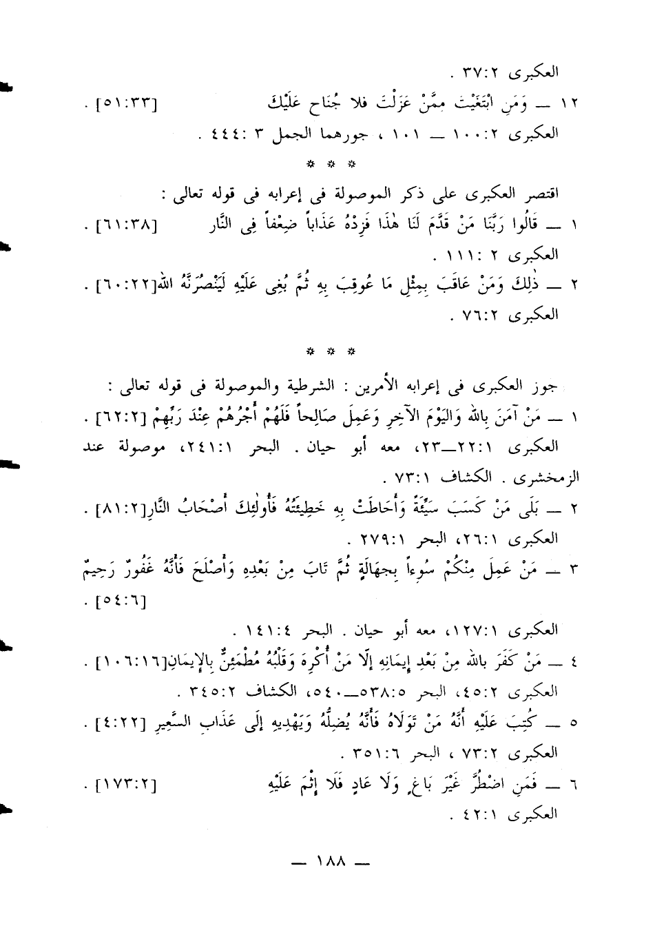 اقتصر العكبري على ذكر الموصولة في إعرابه في قوله تعالى: