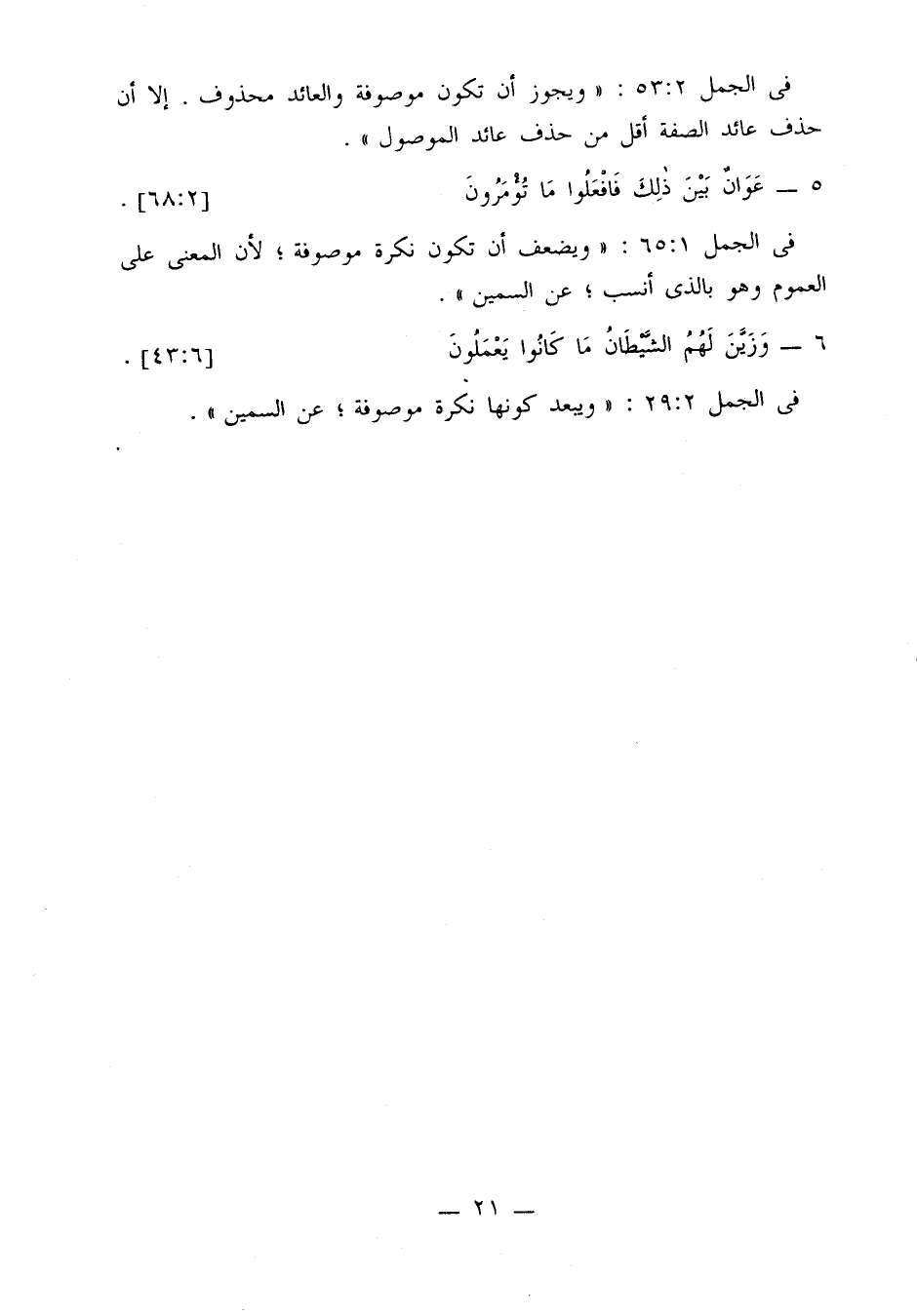 في الجمل 2: 53: «ويجوز أن تكون موصوفة والعائد محذوف. إلا أن حذف عائد الصفة أقل من حذف عائد الموصول».