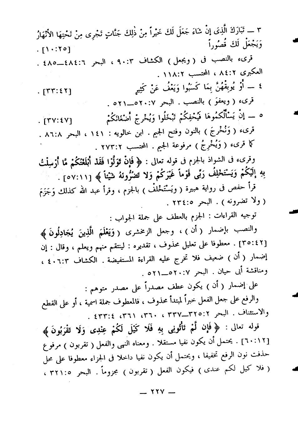 والنصب بإضمار (أن)، وجعل الزمخشري {ويعلم الذين يجادلون} [42: 35]. معطوفًا على تعليل محذوف، تقديره: لينتقم منهم ويعلم، وقال: إن إضمار (أن) ضعيف فلا تخرج عليه القراءة المستفيضة. الكشاف 3: 406، ومناقشة أبي حيان. البحر 7: 520 - 521.