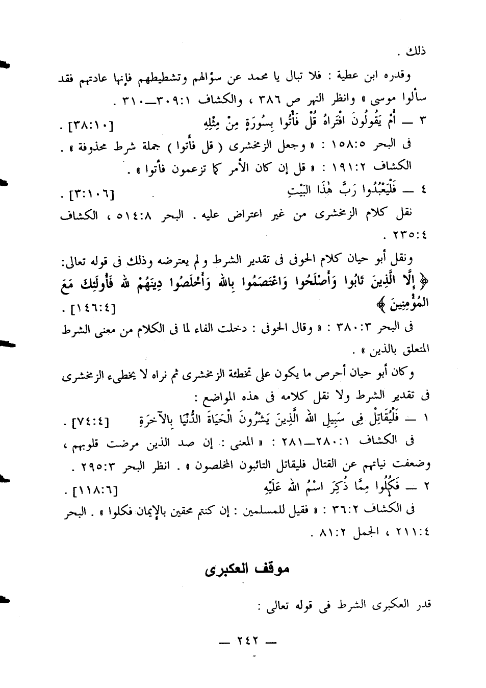 وكان أبو حيان أحرص ما يكون على تخطئة الزمخشري ثم نراه لا يخطئ الزمخشري في تقدير الشرط ولا نقل كلامه في هذه المواضع: