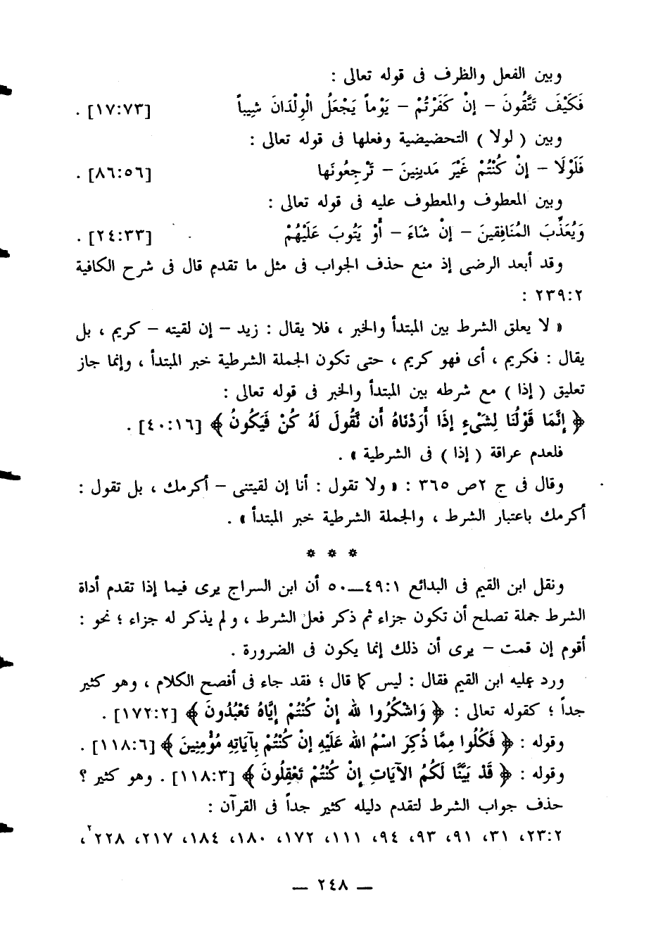 ورد عليه ابن القيم فقال: ليس كما قال؛ فقد جاء في أفصح الكلام، وهو كثير جدًا؛ كقوله تعالى: {واشكروا لله إن كنتم إياه تعبدون} [2: 172].