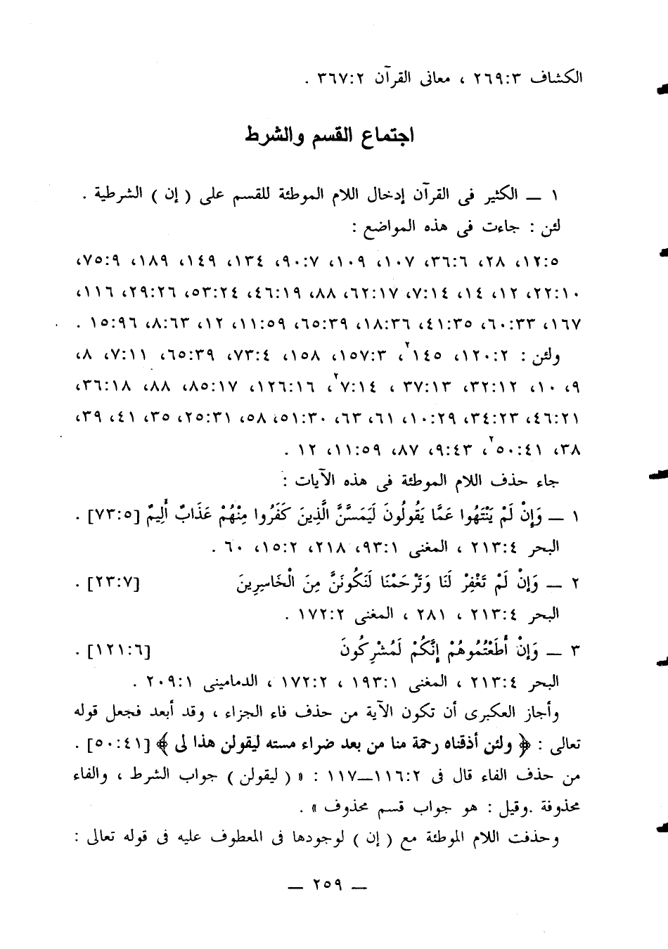 1 - الكثير في القرآن إدخال اللام الموطئة للقسم على (إن) الشرطية.
