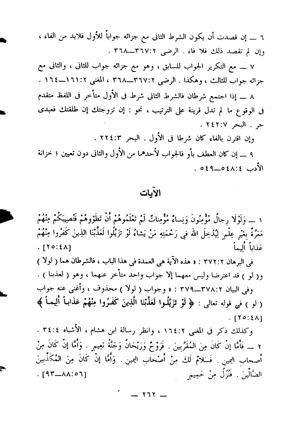 في البرهان 2: 372: «هذه الآية هي العمدة في هذا الباب، فالشرطان هما (لولا) و (لو) قد اعترضا وليس معهما إلا جواب واحد متأخر عنهما، وهو (لعذبنا).