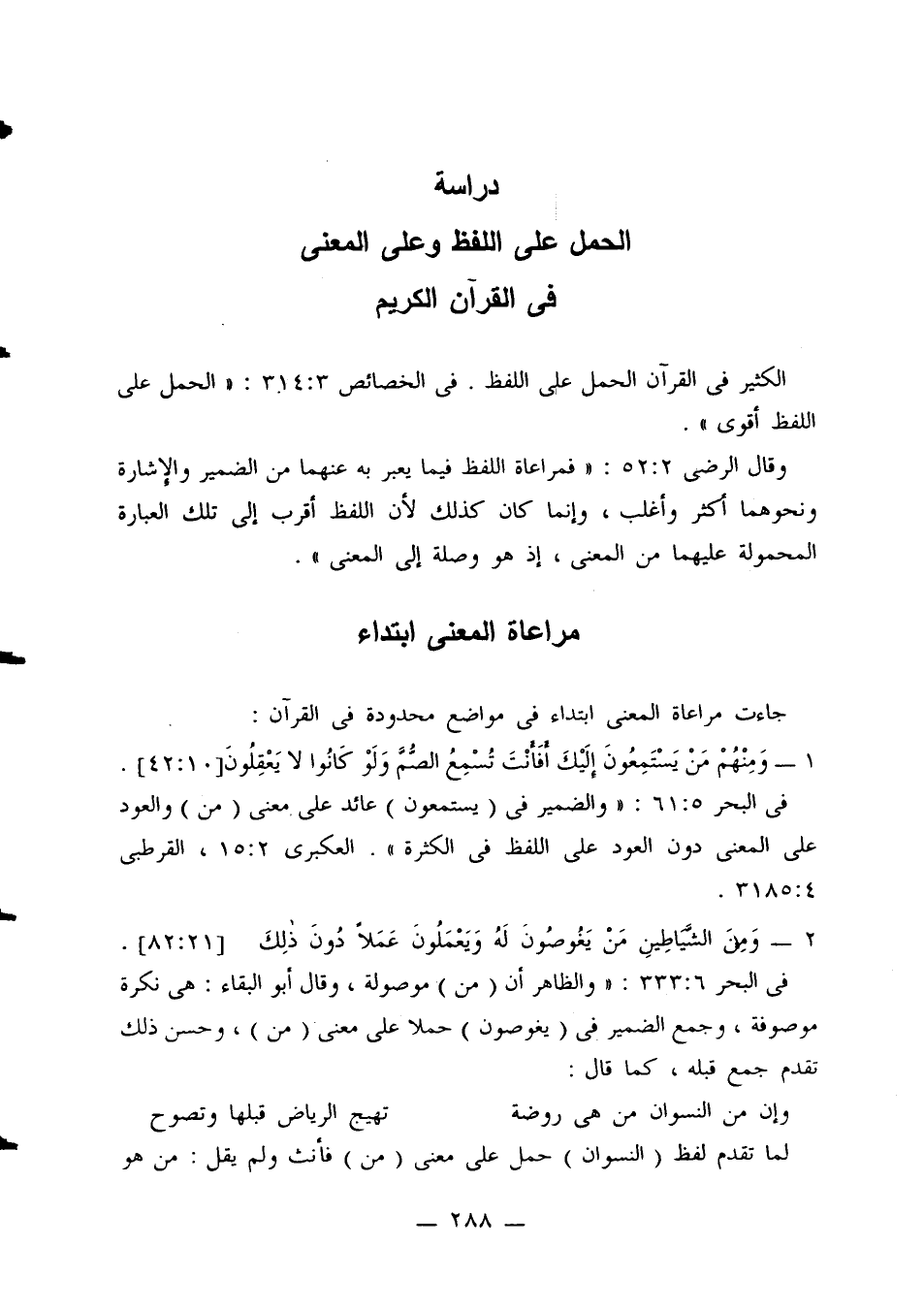 الكثير في القرآن الحمل على اللفظ. في الخصائص 3: 314: «الحمل على اللفظ أقوى».