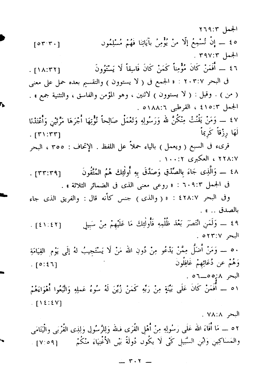 في البحر 7: 203: «الجمع في (لا يستوون) والتقسيم بعده حمل على معنى (من). وقيل: (لا يستوون) لاثنين، وهو المؤمن والفاسق، والتثنية جمع».