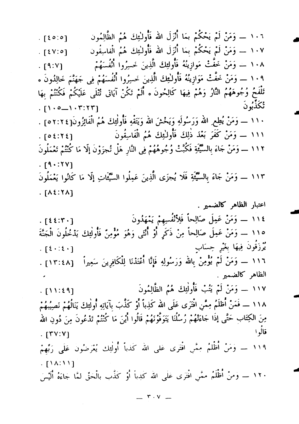 106 - ومن لم يحكم بما أنزل الله فأولئك هم الظالمون [5: 45].