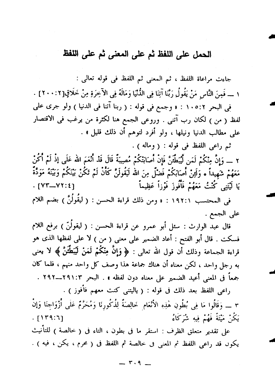 الحمل على اللفظ ثم على المعنى ثم على اللفظ