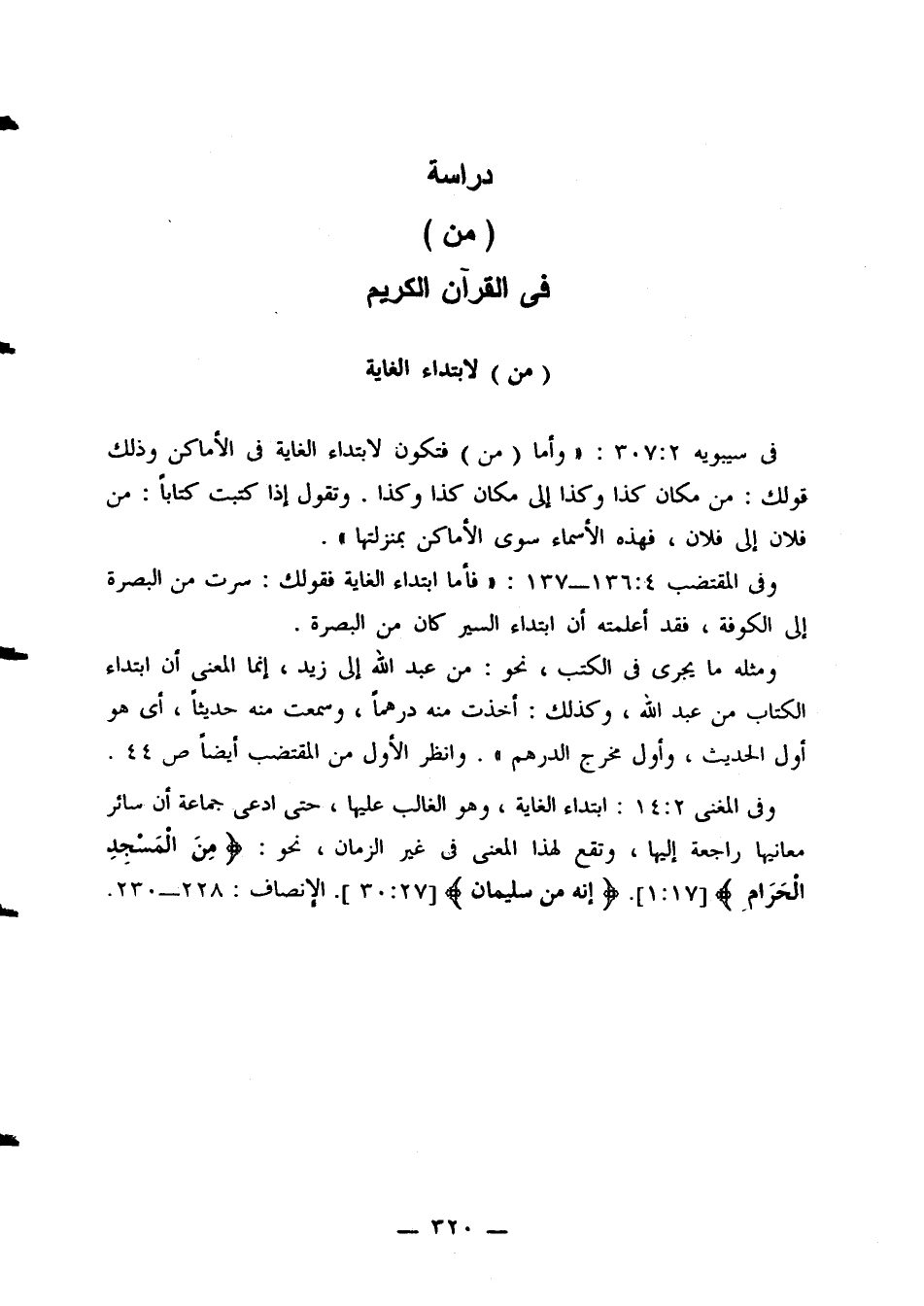 في سيبويه 2: 307: «وأما (من) فتكون لابتداء الغاية في الأماكن وذلك قولك: من مكان كذا وكذا إلى مكان كذا وكذا. وتقول إذا كتبت كتابا: من فلان إلى فلان، فهذه الأسماء سوى الأماكن بمنزلتها».
