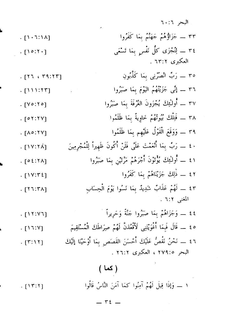 34 - {لتجزى كل نفس بما تسعى} [20: 15]. العكبري 2: 63.