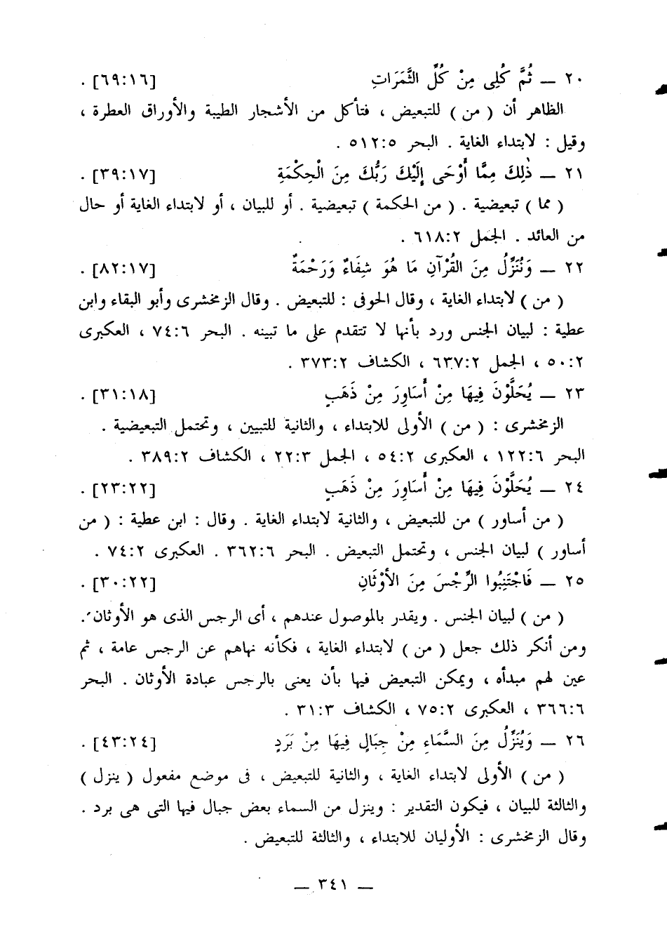 الزمخشري: (من) الأولى للابتداء، والثانية للتبيين، وتحتمل التبعيضية. البحر 6: 122، العكبري 2: 54، الجمل 3: 22، الكشاف 2: 389.