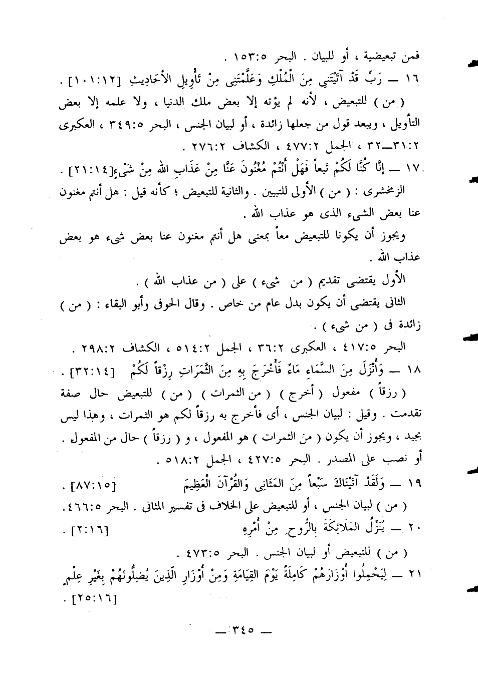 (من) للتبعيض أو لبيان الجنس. البحر 5: 473.