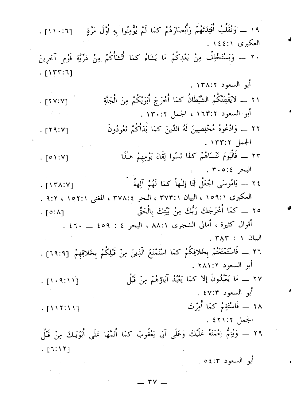 20 - {ويستخلف من بعدكم ما يشاء كما أنشأكم من ذرية قوم آخرين} [6: 133]. أبو السعود 2: 138.