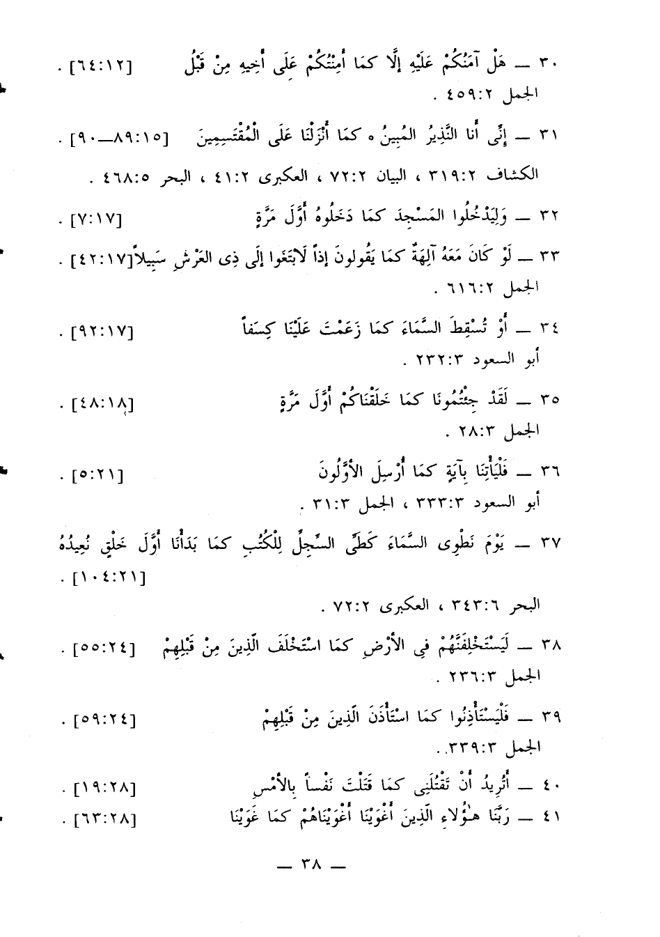 38 - {ليستخلفنهم في الأرض كما استخلف الذين من قبلهم} [24: 55]. الجمل 3: 236.