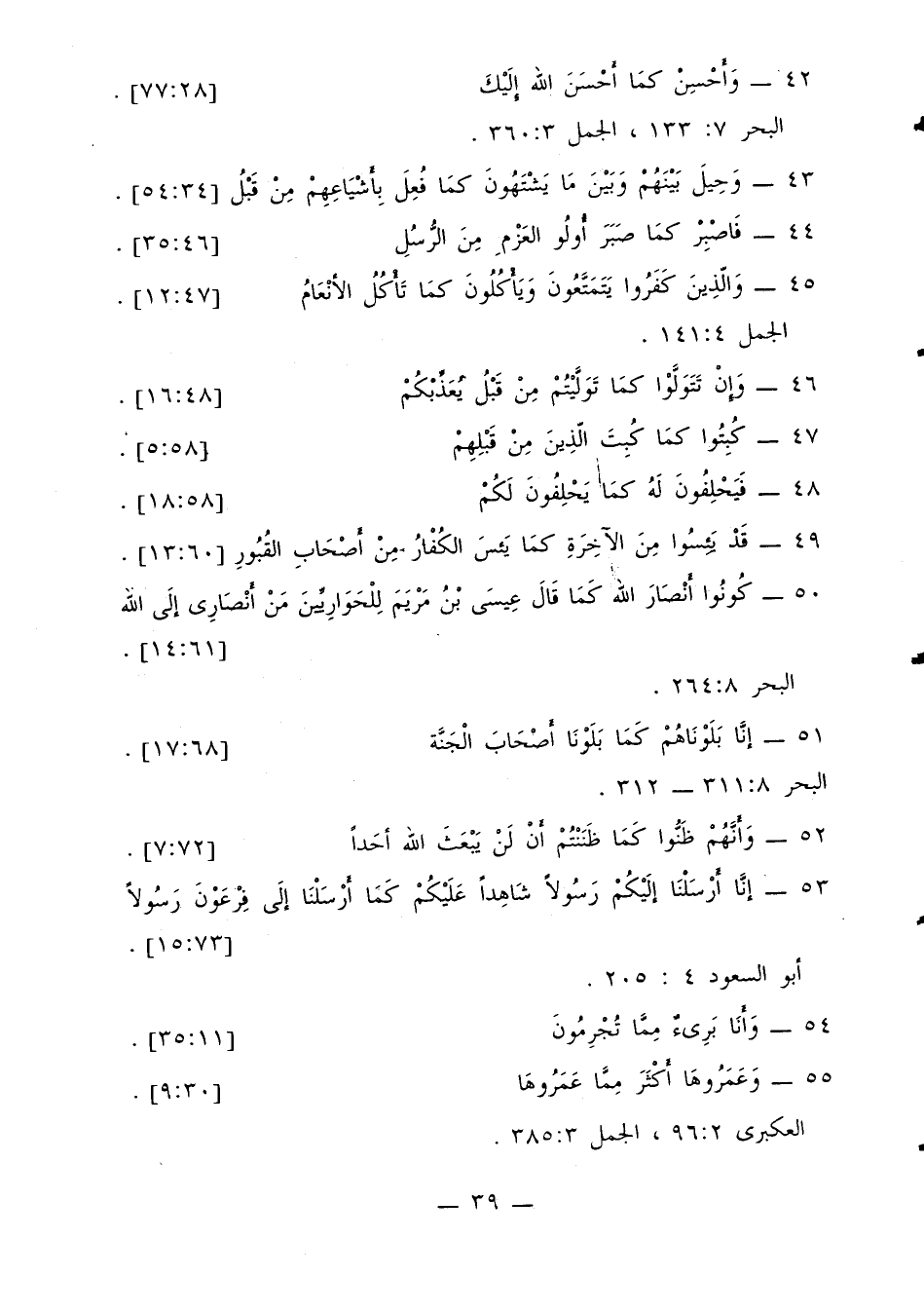 42 - {وأحسن كما أحسن الله إليك} [28: 77]. البحر 7: 133، الجمل 3: 360.