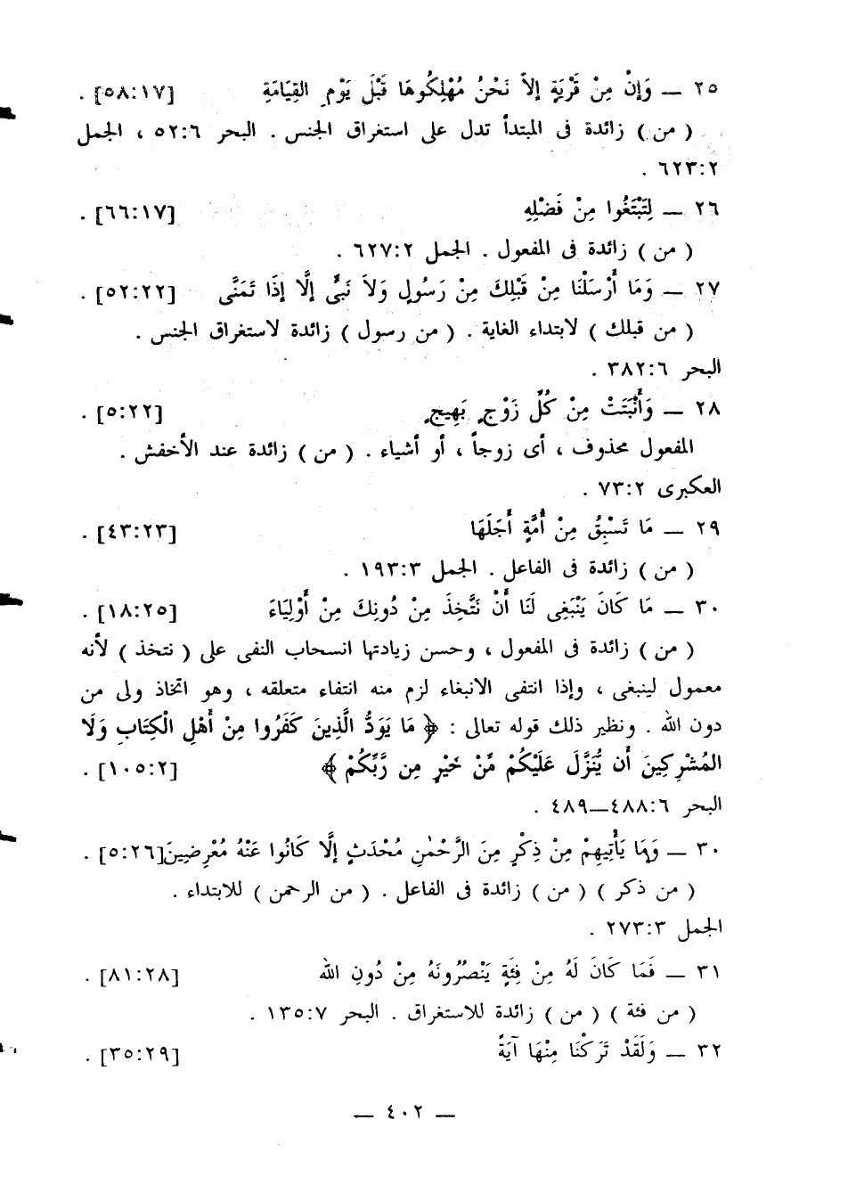 (من) زائدة في المبتدأ تدل على استغراق الجنس. الحبر 6: 52، الجمل 2: 623.
