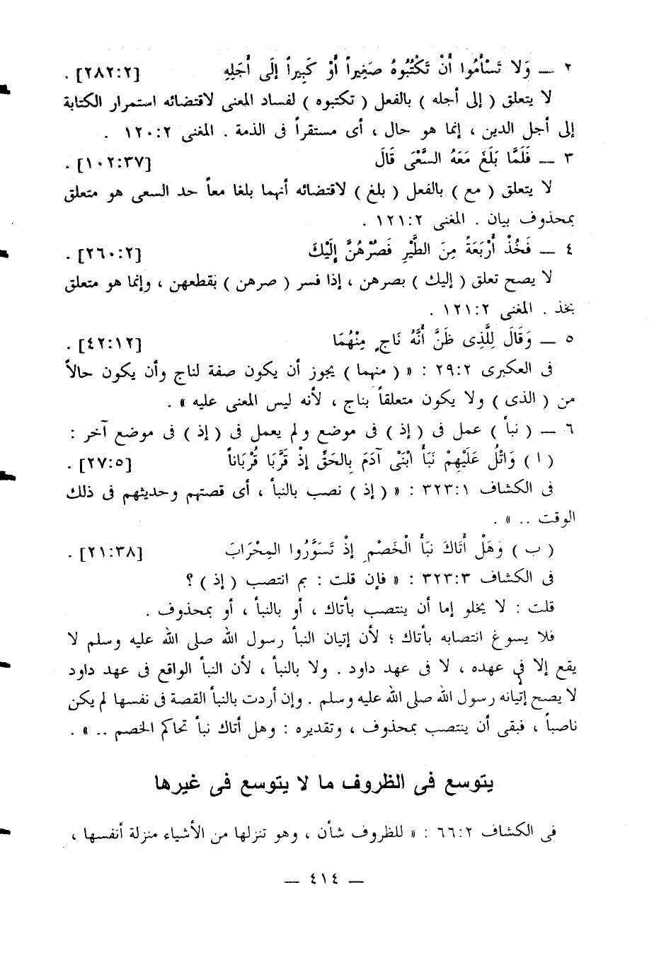 في الكشاف 2: 66: «للظروف شأن، وهو تنزلها من الأشياء منزلة أنفسها،