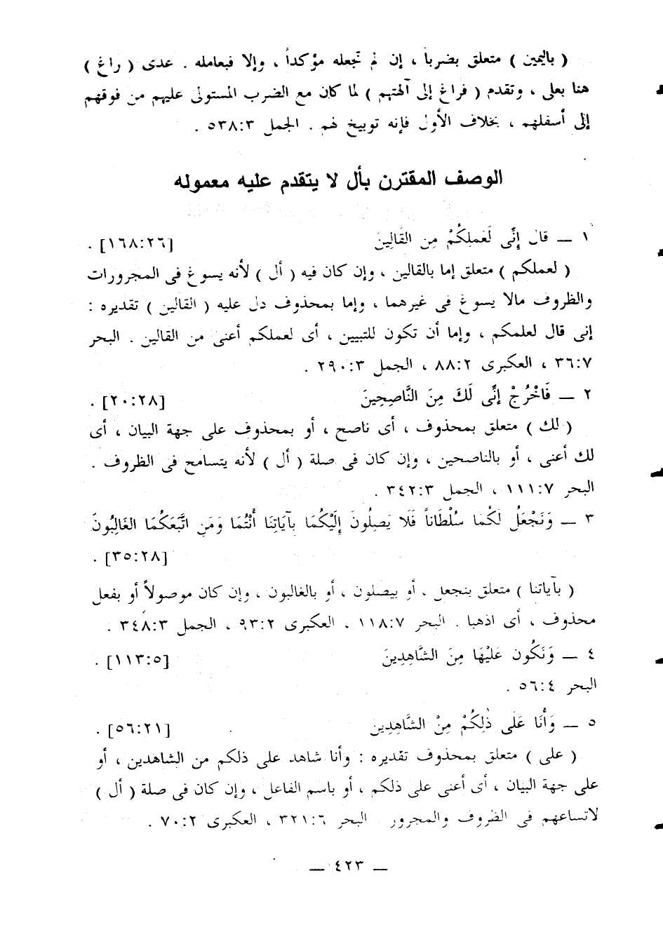 الوصف المقترن بأل لا يتقدم عليه معموله