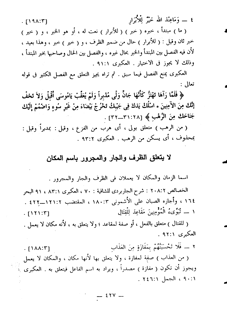الخصائص 2: 208: شرح الجاربردي للشافية: 70، العكبري 1: 83، 91 البحر 164، وأجازه الصبان على الأشموني 3: 180، المقتضب 2: 121 - 422.