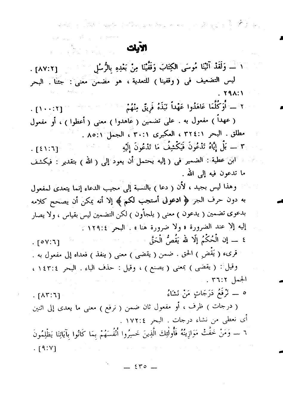 وهذا ليس بجيد، لأن (دعا) بالنسبة إلى مجيب الدعاء إنما يتعدى لمفعول به دون حرف الجر {ادعوني أستجيب لكم} إلا أنه يمكن أن يصحح كلامه بدعوى تضمين (يدعون) معنى (يلجأون) لكن التضمين ليس بقياس، ولا يصار إليه إلا عند الضرورة «ولا ضرورة هنا». البحر 4: 129.
