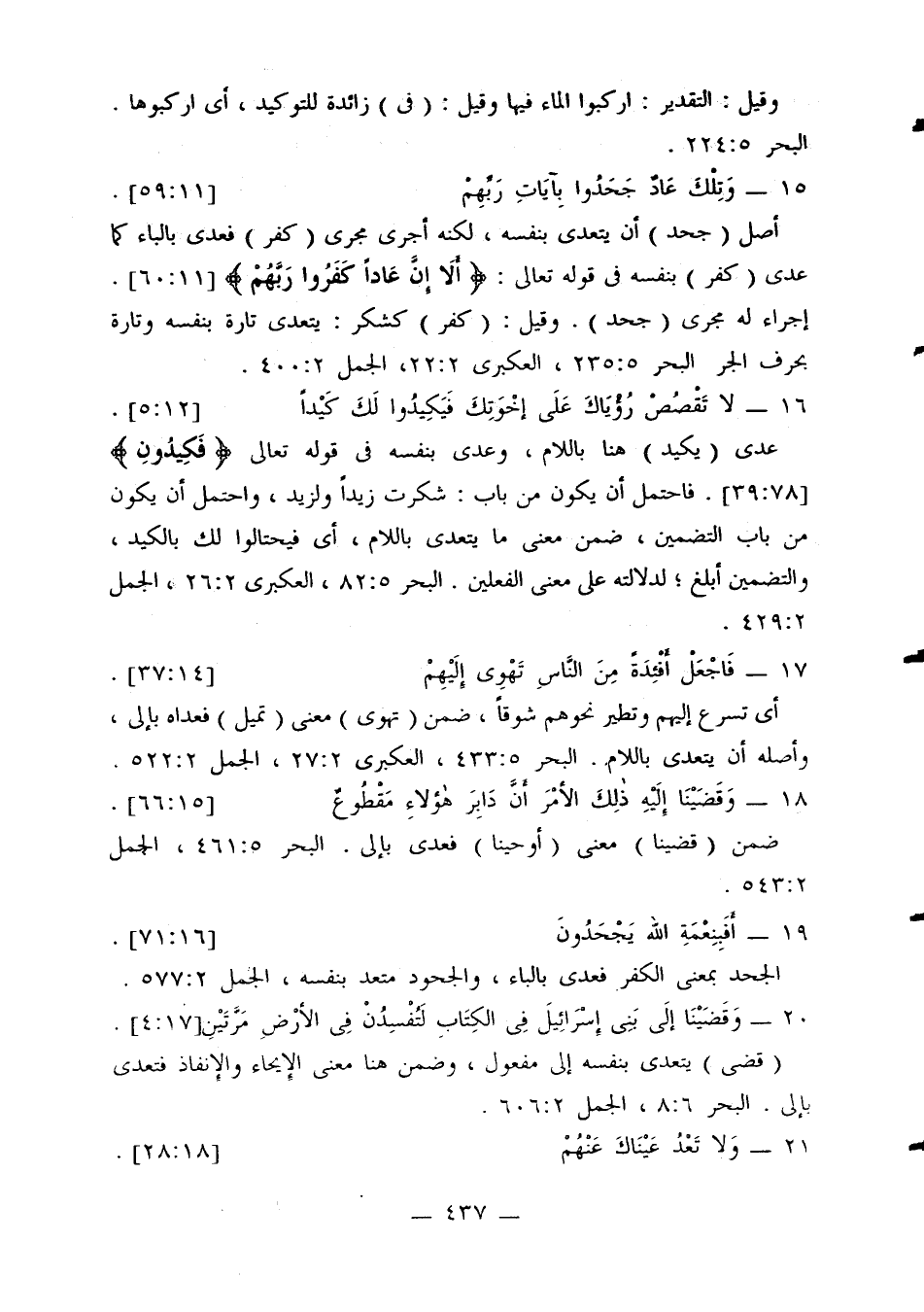 إجراء له مجرى (جحد). وقيل: (كفر) كشكر: يتعدى تارة بنفسه وتارة بحرف الجر. البحر 5: 235، العكبري 2: 22، الجمل 2: 400.