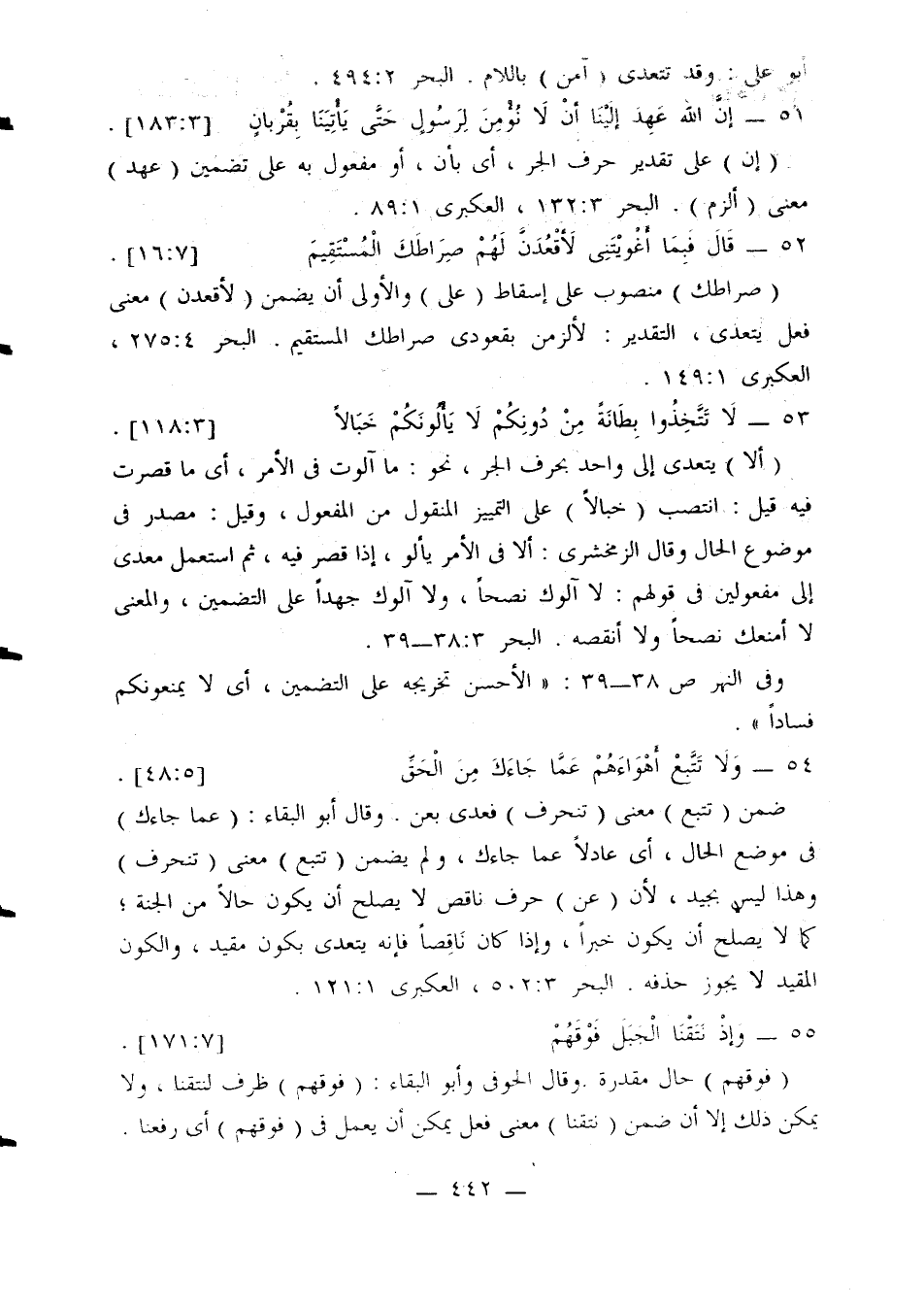 وفي النهر ص 38 - 39: «الأحسن تخريجه على التضمين، أي لا يمنعونكم فسادًا».