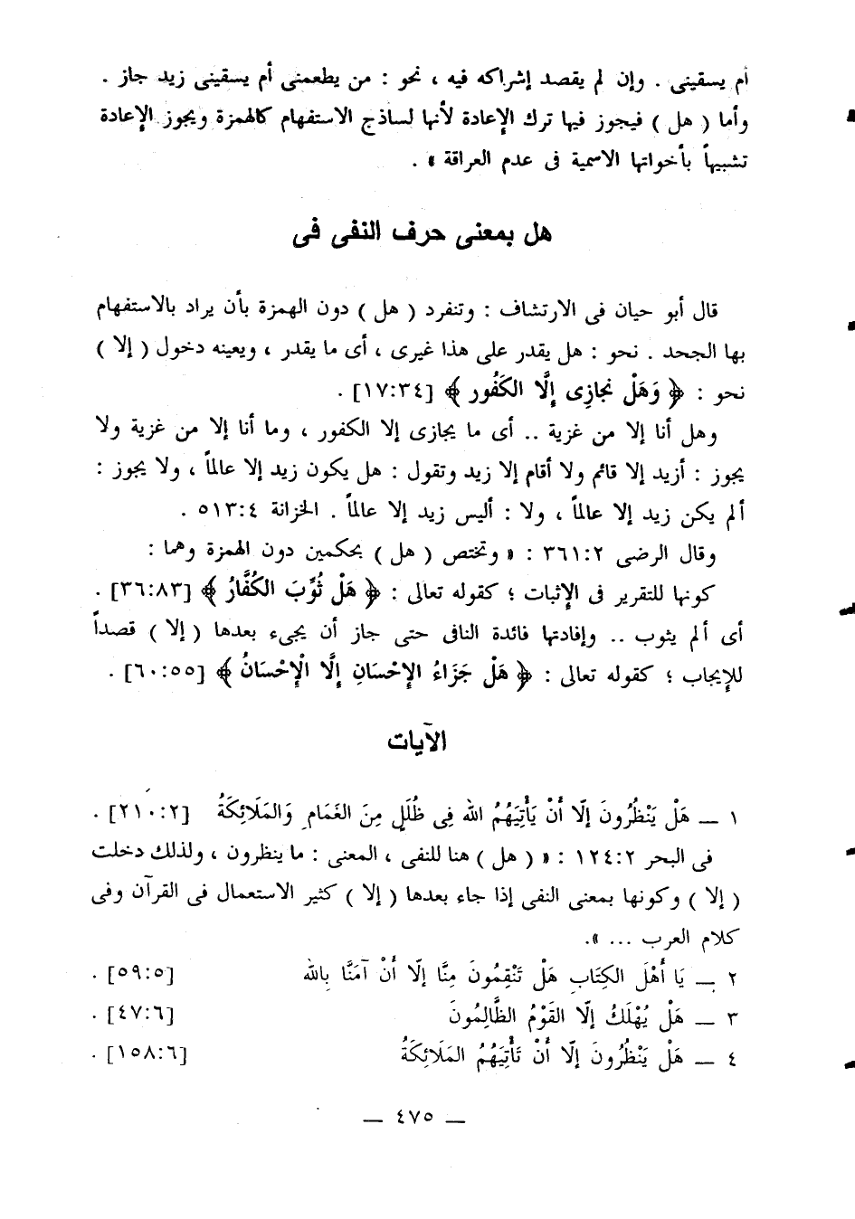 في البحر 2: 124: «(هل) هنا للنفي، المعنى: ما ينظرون، ولذلك دخلت (إلا) وكونها بمعنى النفي إذا جاء بعدها (إلا) كثير الاستعمال في القرآن وفي كلام العرب. . .».