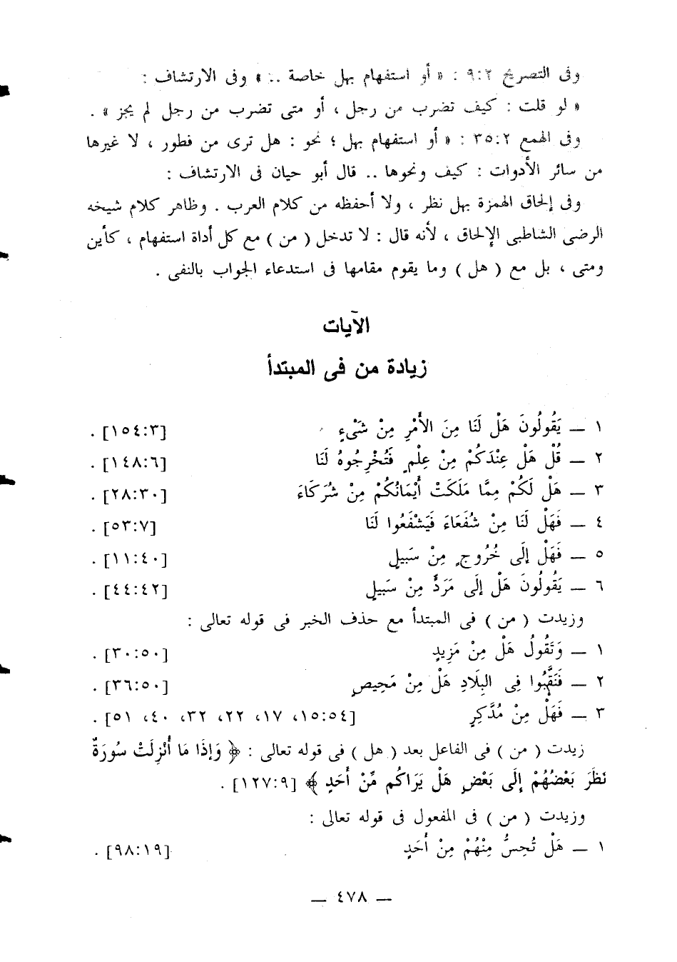 وفي الهمع 2: 35: «أو استفهام بهل؛ نحو: هل ترى من فطور، لا غيرها من سائر الأدوات: كيف ونحوها. . . قال أبو حيان في الارتشاف: