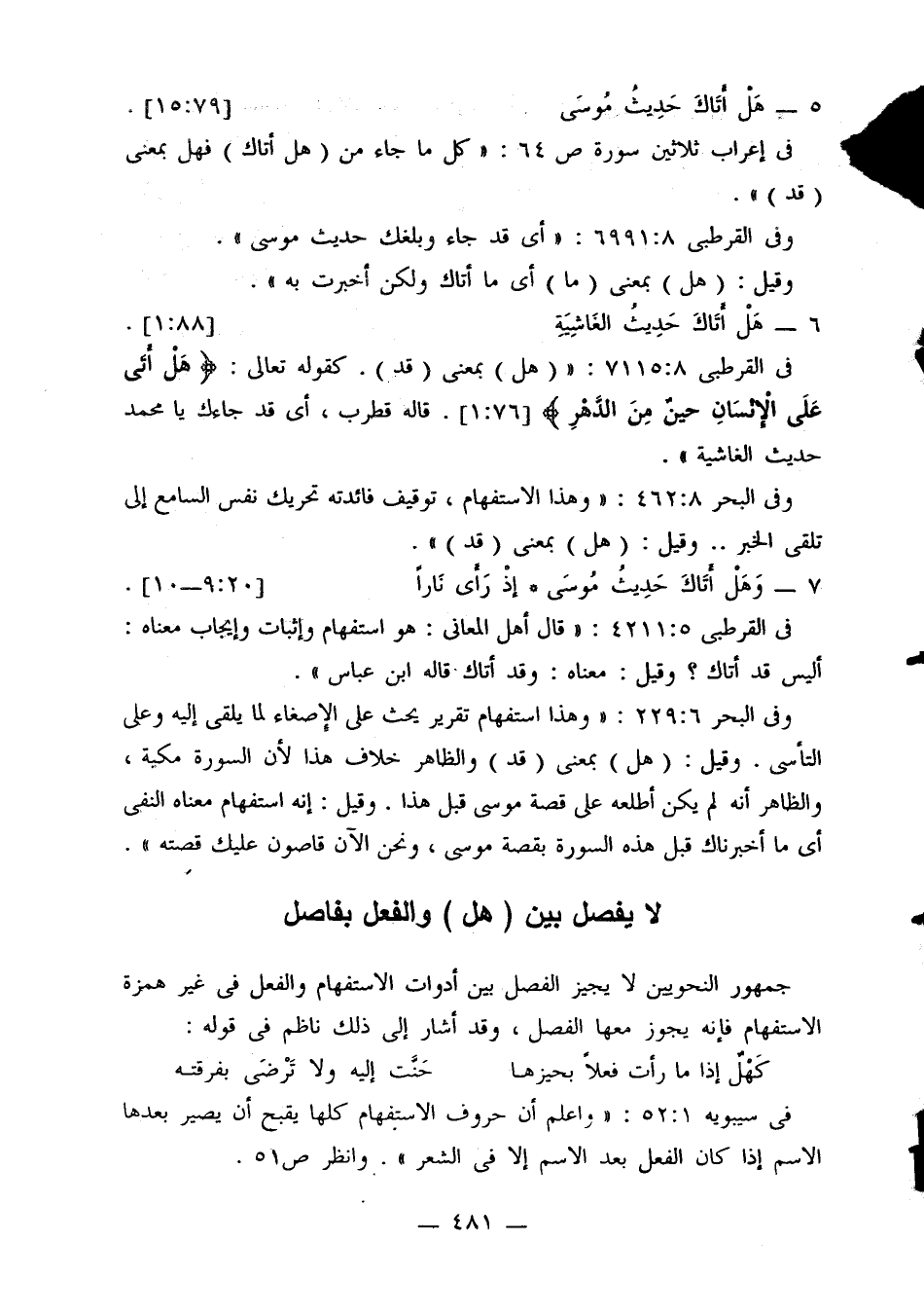 لا يفصل بين (هل) والفعل بفاصل