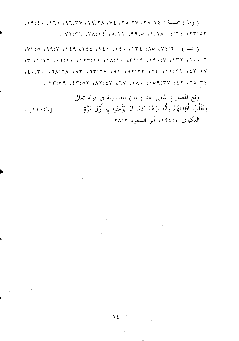 (وما) محتملة: 14: 38، 27: 25: 74، 28: 69، 37: 96، 161، 40: 19، 53: 23، 64: 4، 68: 1، 5: 99، 11: 5، 14: 38، 36: 76.