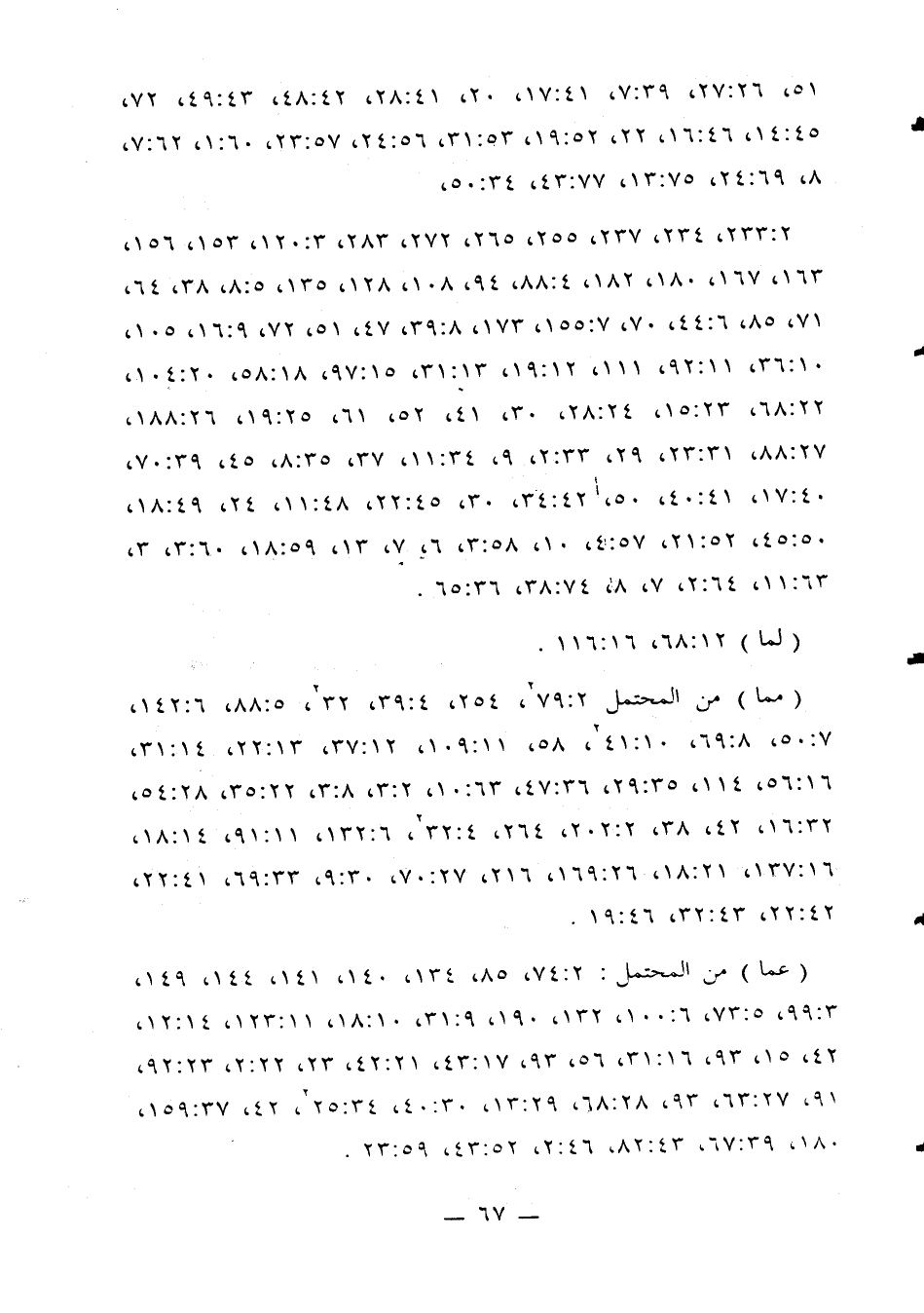 (مما) من المحتمل: 2: 79، 254، 4: 39، 32، 5: 88، 6: 142، 7: 50، 8: 69، 10: 41، 58، 11: 109، 12: 37، 13: 22، 14: 31، 16: 56، 114، 35: 29، 36: 47، 63: 10، 2: 3، 8: 3، 22: 35، 28: 54، 32: 16، 42، 38، 2: 202، 264، 4: 32، 6: 132، 11: 91، 14: 18، 16: 137، 21: 18، 26: 169، 216، 27: 70، 30: 9، 33: 69، 41: 22، 42: 22، 43: 32، 46: 19.