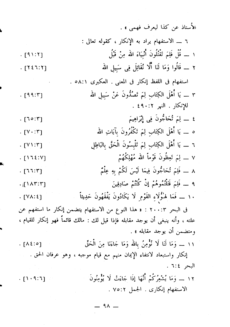 3 - {يا أهل الكتاب لم تصدون عن سبيل الله} [3: 99]. للإنكار، النهر 2: 490.