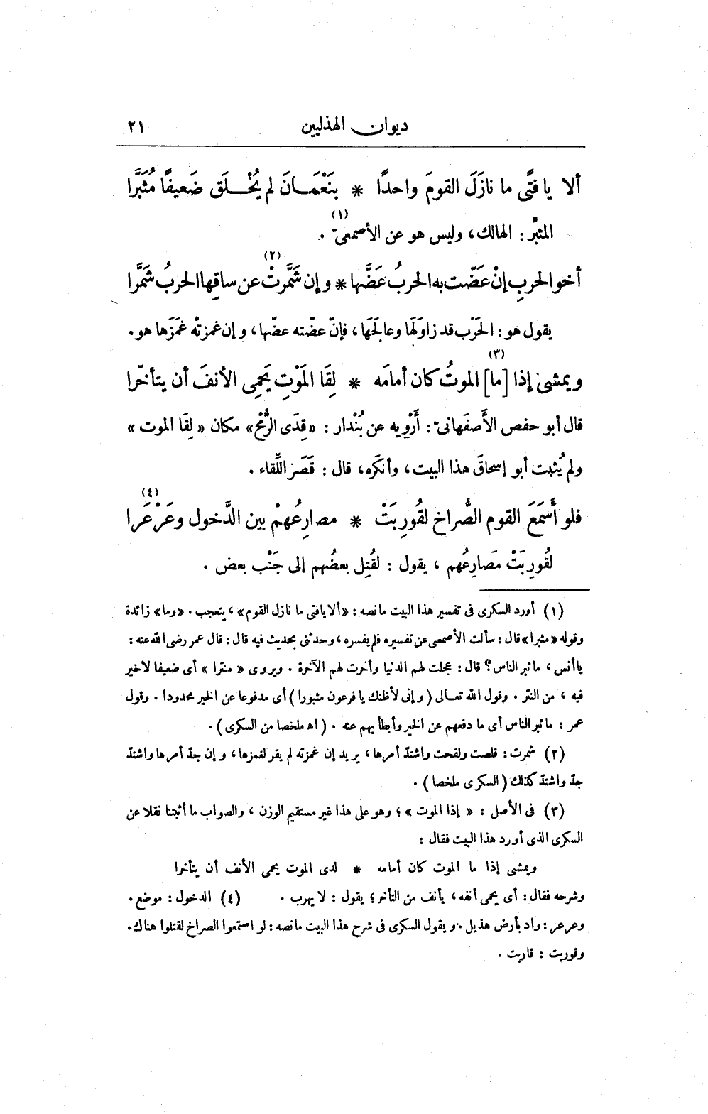 (¬3) في الأصل: «إذا الموت»؛ وهو على هذا غير مستقيم الوزن، والصواب ما أثبتنا نقلا عن السكرى الذي أورد هذا البيت فقال: