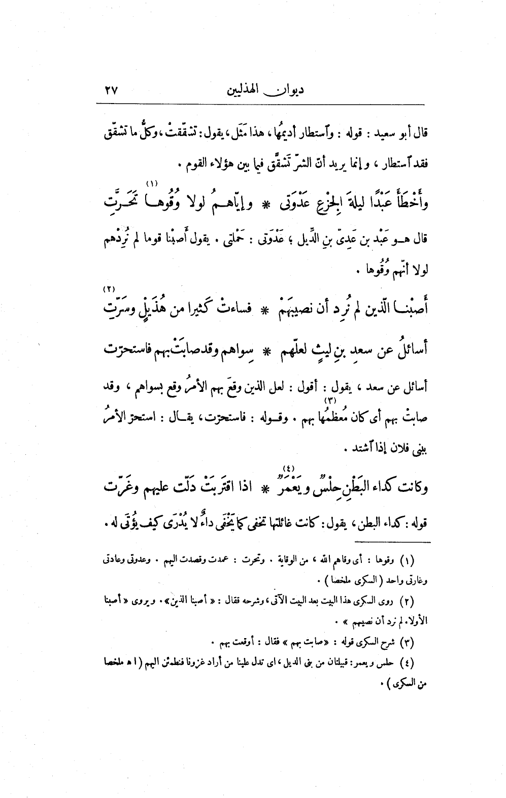 أَصبْنا الّذين لم نُرِد أن نصيبَهمْ ... فساءتْ كَثيرا من هُذَيلٍ وسَرّتِ (¬2)