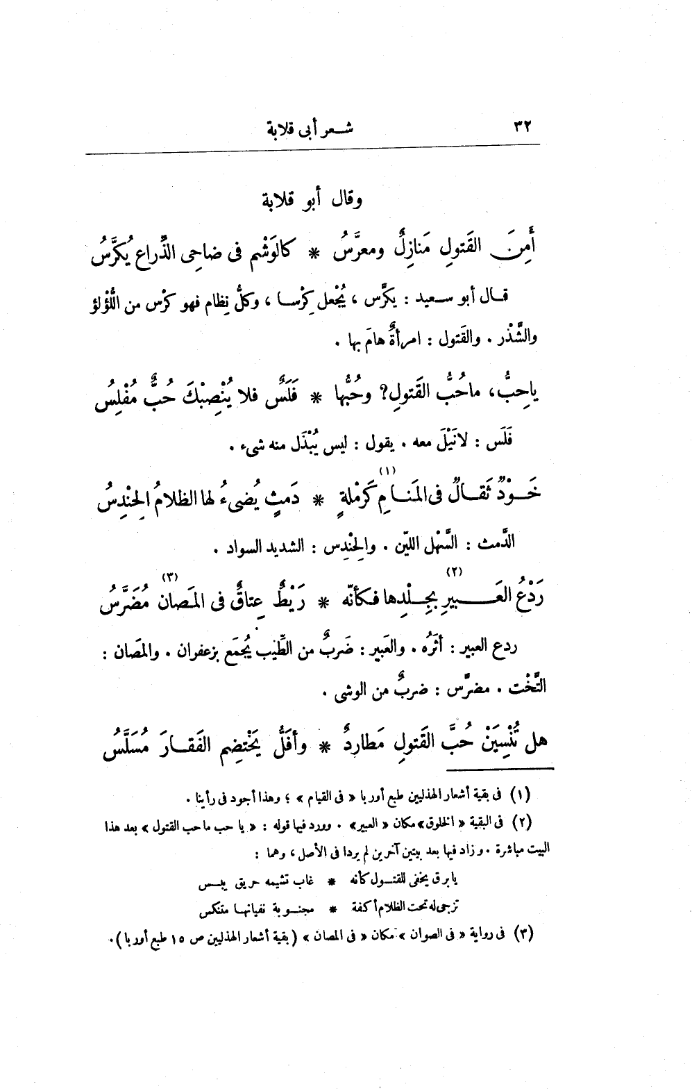 (¬1) في بقية أشعار الهذليين طبع أوربا "في القيام"؛ وهذا أجود في رأينا.