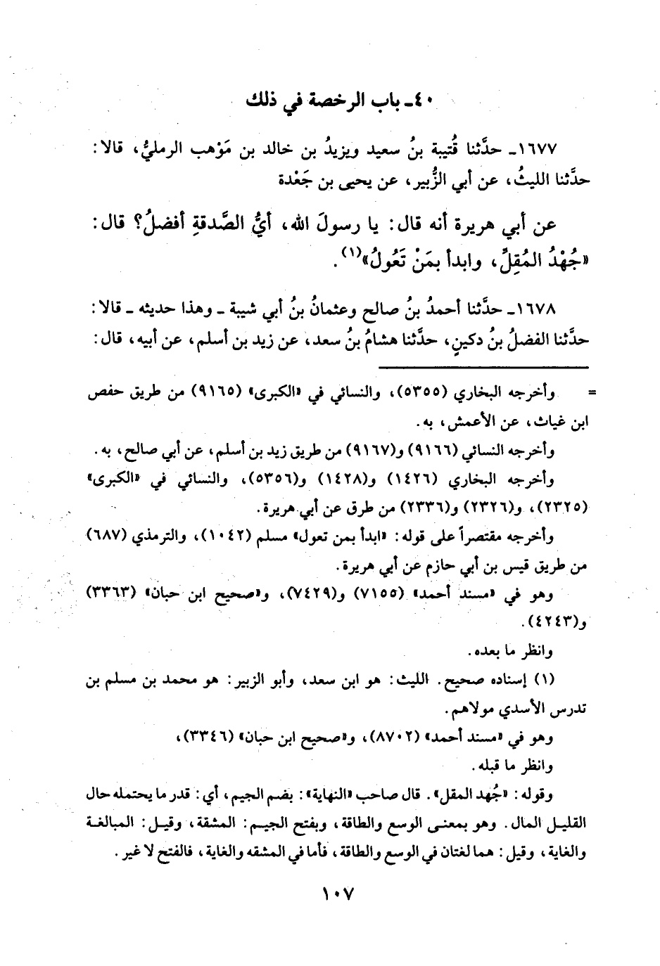 عن أبي هريرة أنه قال: يا رسولَ الله، أيُّ الصدقةِ أفضلُ؟ قال: "جُهْدُ المُقِلِّ، وابدأ بمَنْ تَعُولُ" (¬١).