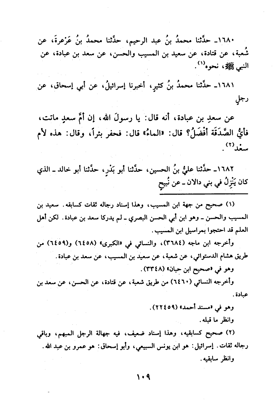 ١٦٨٠ - حدَّثنا محمدُ بنُ عبد الرحيم, حدَّثنا محمدُ بنُ عَرعرةَ، عن شُعبة، عن قتادة، عن سعيد بن المسيب والحسن، عن سعد بن عبادة، عن النبي - صلَّى الله عليه وسلم -، نحوه (¬١).