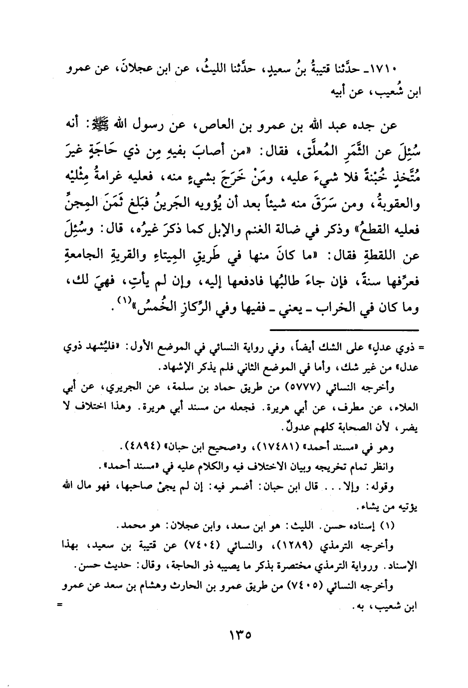 ١٧١٠ - حدَّثنا قتيبةُ بنُ سعيدٍ، حدَّثنا الليثُ، عن ابن عجلانَ، عن عمرو ابن شُعيب، عن أبيه