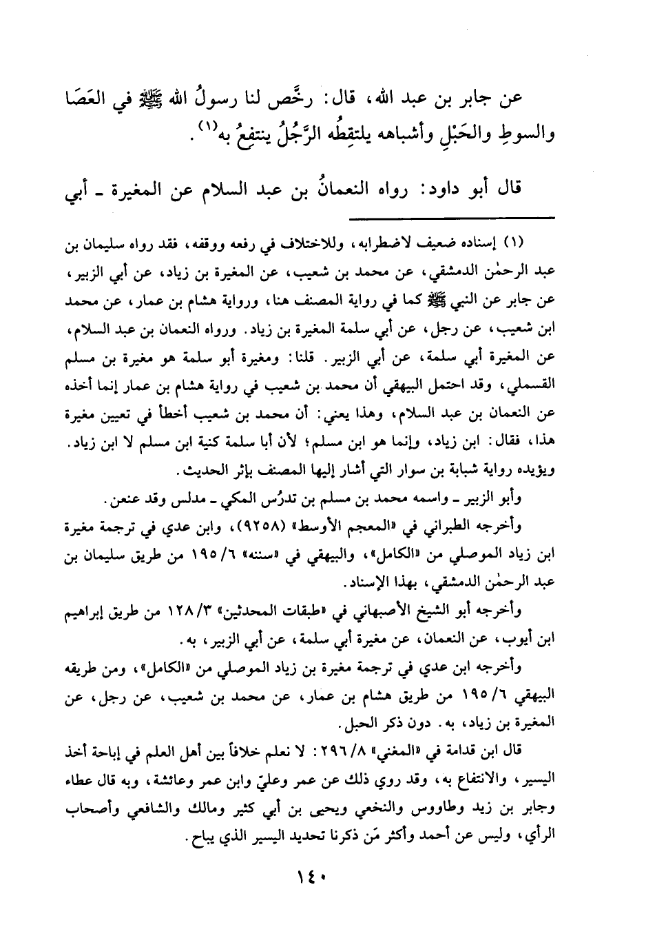 عن جابر بن عبد الله، قال: رخَّص لنا رسولُ الله - صلَّى الله عليه وسلم - في العَصَا والسوطِ والحَبْلِ وأشباهه يلتقِطُه الرَّجُلُ ينتفعُ به (¬١).