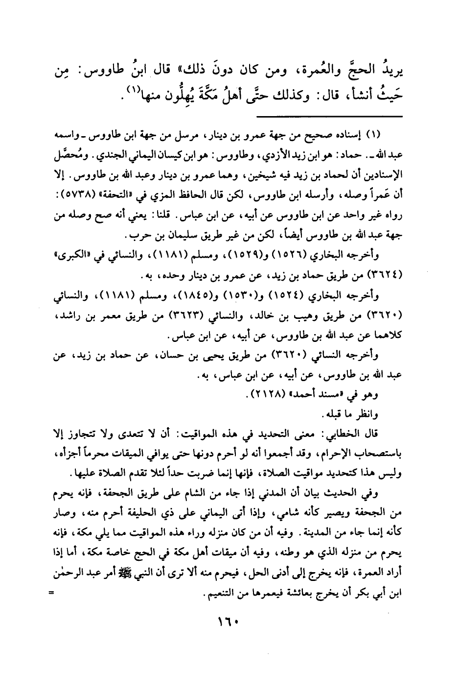 الإسنادين أن لحماد بن زيد فيه شيخين، وهما عمرو بن دينار وعبد الله بن طاووس. إلا أن عَمراً وصله، وأرسله ابن طاووس، لكن قال الحافظ المزي في "التحفة" (٥٧٣٨): رواه غير واحد عن ابن طاووس عن أبيه، عن ابن عباس. قلنا: يعني أنه صح وصله من جهة عبد الله بن طاووس أيضاً، لكن من غير طريق سليمان بن حرب.