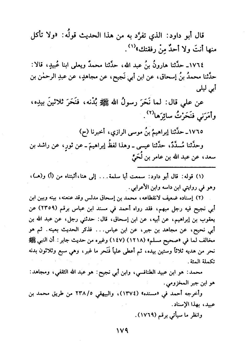قال أبو داود: الذي تفرَّد به من هذا الحديث قولُه: "ولا تأكل منها أنتَ ولا أحدٌ مِنْ رفقتك" (¬١).