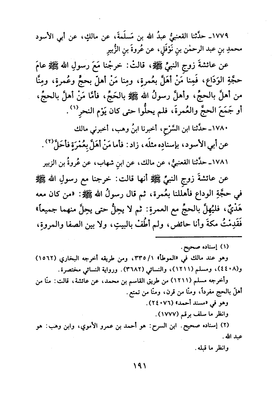 ١٧٧٩ - حدَّثنا القعنبيُّ عبدُ الله بن مَسلَمةَ، عن مالكٍ، عن أبي الأسود محمدِ بنِ عبد الرحمن بنِ نَوفَلِ، عن عُروةَ بنِ الزُّبيرِ