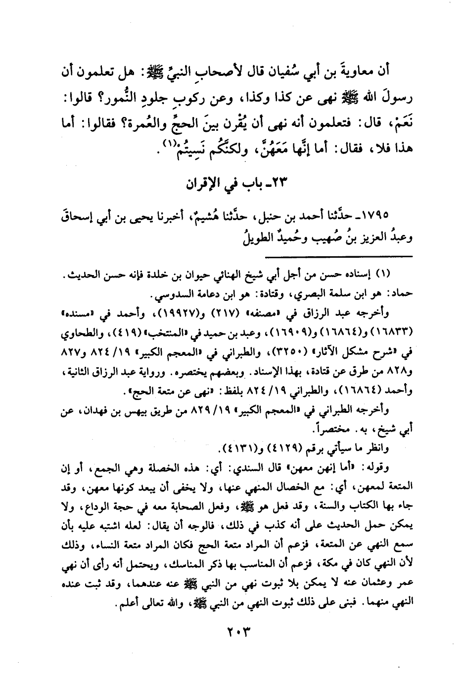 وأخرجه عبد الرزاق في "مصنفه" (٢١٧) و (١٩٩٢٧)، وأحمد في "مسنده" (١٦٨٣٣) و (١٦٨٦٤) و (١٦٩٠٩)، وعبد بن حميد في "المنتخب" (٤١٩)، والطحاوي في"شرح مشكل الآثار" (٣٢٥٠)، والطبرانى في"المعجم الكبير" ١٩/ ٨٢٤ و ٨٢٧ و ٨٢٨ من طرق عن قتادة، بهذا الإسناد. وبعضهم يختصره. ورواية عبد الرزاق الثانية، وأحمد (١٦٨٦٤)، والطبراني ١٩/ ٨٢٤ بلفظ: "نهى عن متعة الحج".