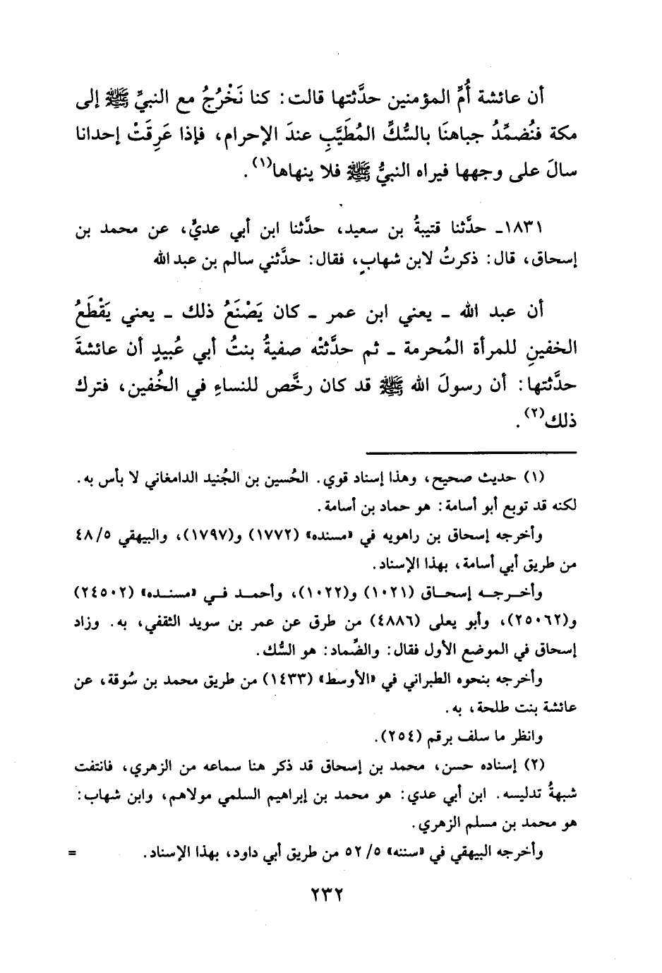 ١٨٣١ - حدَّثنا قتيبةُ بن سعيد، حدَّثنا ابن أبي عديّ، عن محمد بن إسحاق، قال: ذكرتُ لابن شهابٍ، فقال: حدثني سالم بن عبد الله