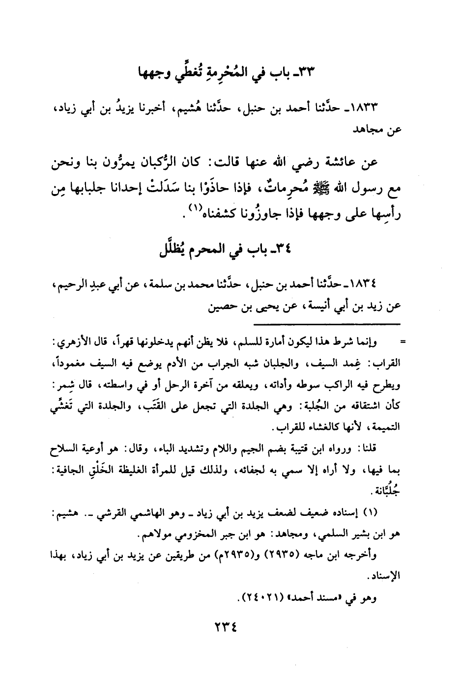١٨٣٣ - حدَّثنا أحمد بن حنبل، حدَّثنا هُشيم، أخبرنا يزيدُ بن أبي زياد، عن مجاهد