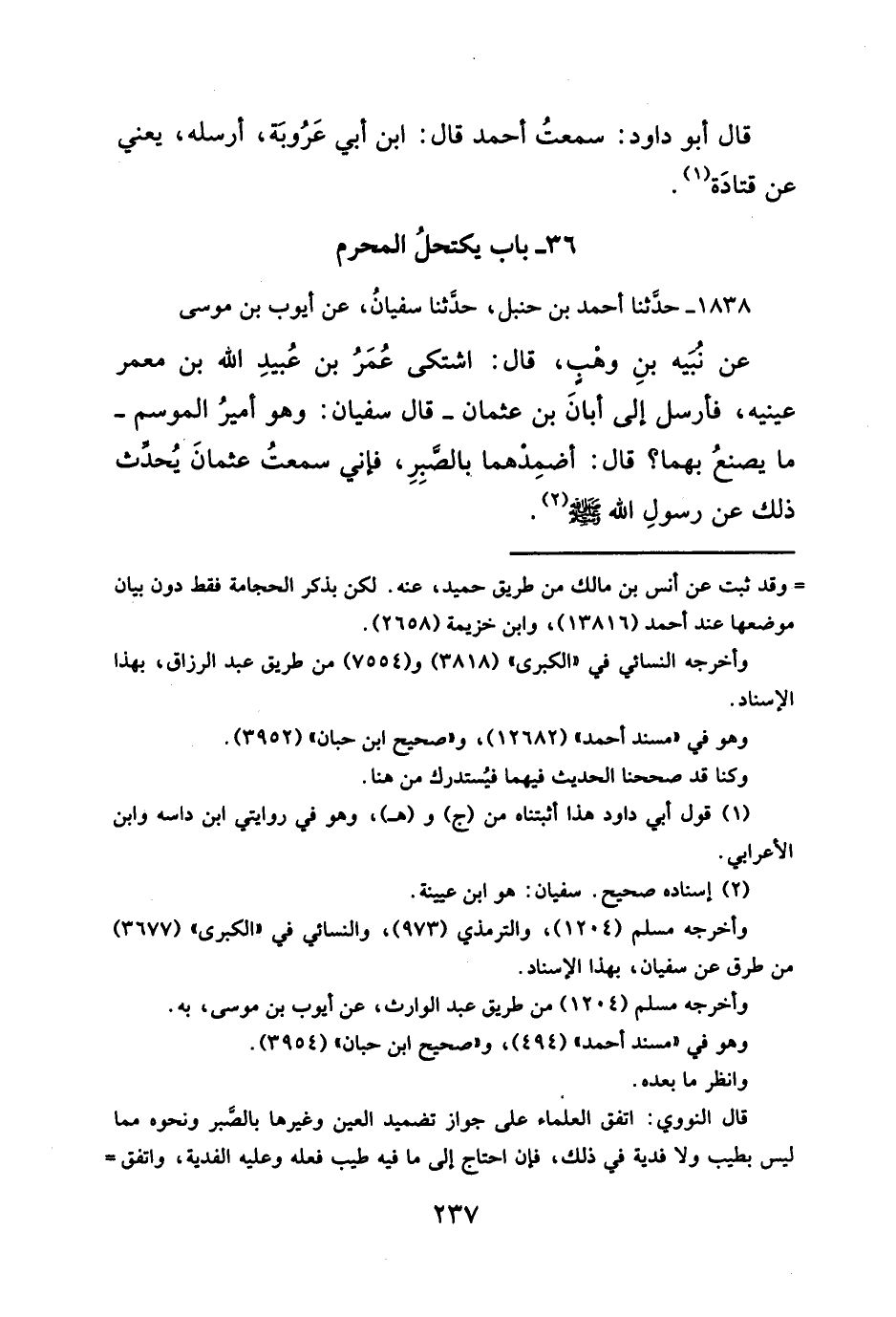 ١٨٣٨ - حدَّثنا أحمد بن حنبل، حدَّثنا سفيانُ، عن أيوب بن موسى