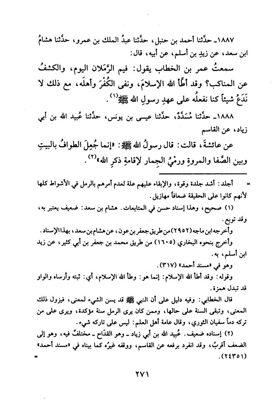 ١٨٨٧ - حدَّثنا أحمد بن حنبل، حدَّثنا عبدُ الملك بن عمرو، حدَّثنا هشامُ ابن سعد، عن زيدِ بن أسلم، عن أبيه، قال: