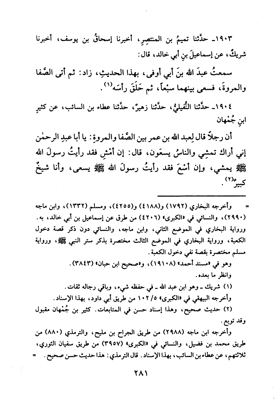 سمعتُ عبدَ الله بنَ أبي أوفى، بهذا الحديثِ، زاد: ثم أتى الصَّفا والمروةَ، فسعى بينهما سبعاً، ثم حَلَقَ رأسَه (¬١).