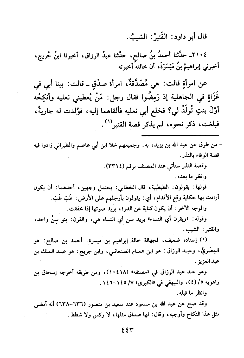 ٢١٠٤ - حدَّثنا أحمدُ بنُ صالحٍ، حدَّثنا عبدُ الرزاق، أخبرنا ابنُ جُريج، أخبرني إبراهيمُ بنُ مَيسَرَةَ، أن خالته أخبرته