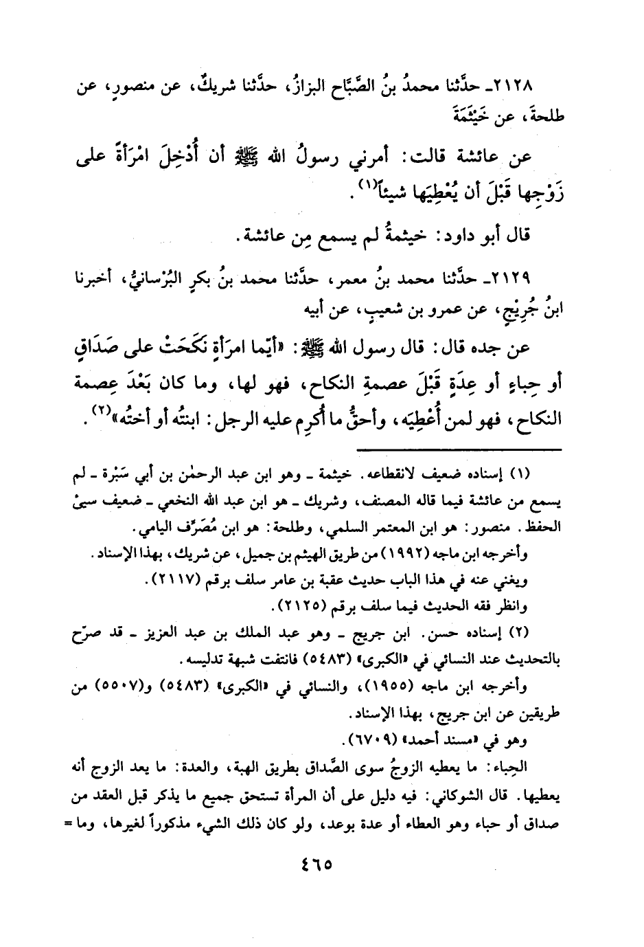 قال أبو داود: خيثمةُ لم يسمع مِن عائشة.